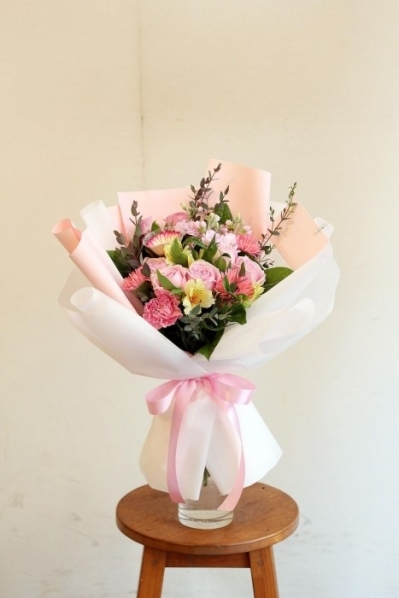 분홍장미계절꽃다발