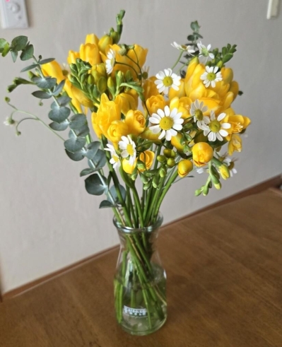 프리지아 시즌 꽃다발