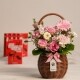 핑크 계절 꽃바구니+빼빼로 5개