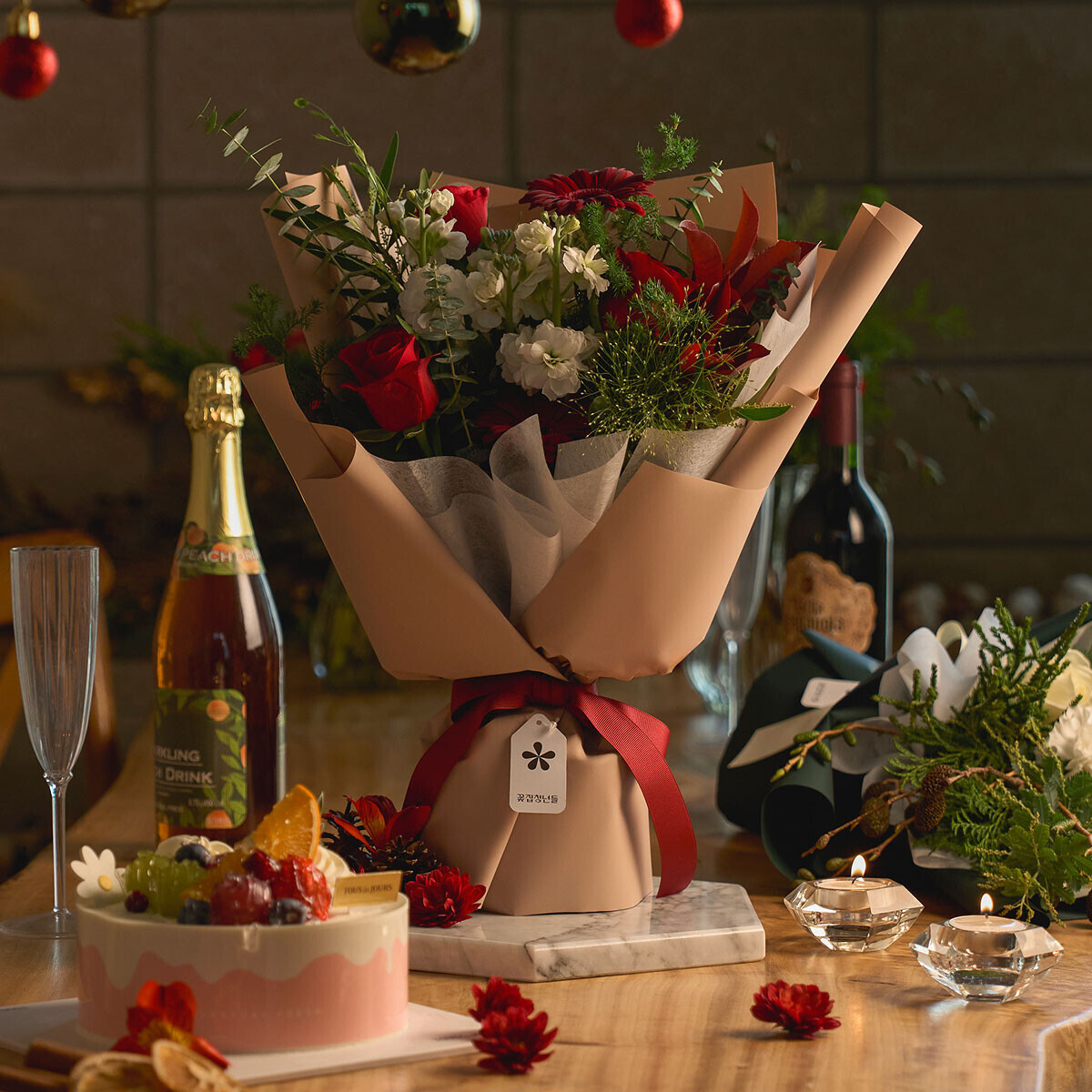 크리스마스 꽃다발+케이크